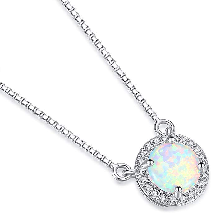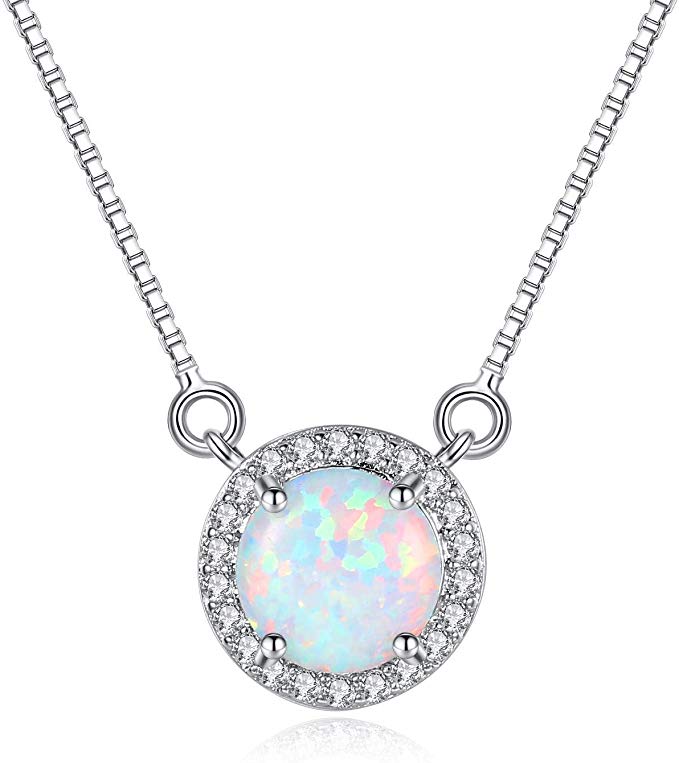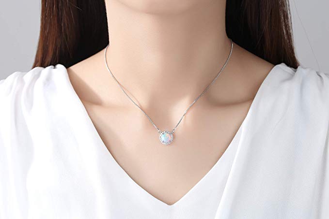 - ✦SIMPLE DESIGN✦:This dainty necklace features a round simulated white opal gemstone surrounded by a halo of white topaz stones. Opal birthstone for love, promise, hope, and new beginnings. Fit for any occasion as daily wearing home and office.