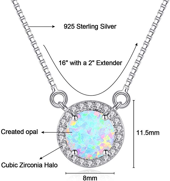 - ✦MATERIAL✦:14K white gold plated Chain and 7mm Opal pendant, Spring-ring clasp length 16″ with 2″ extender to comfortably fit all neck sizes. Perfect for Layering.