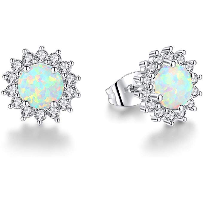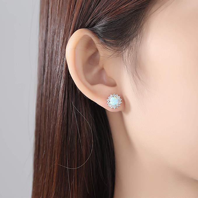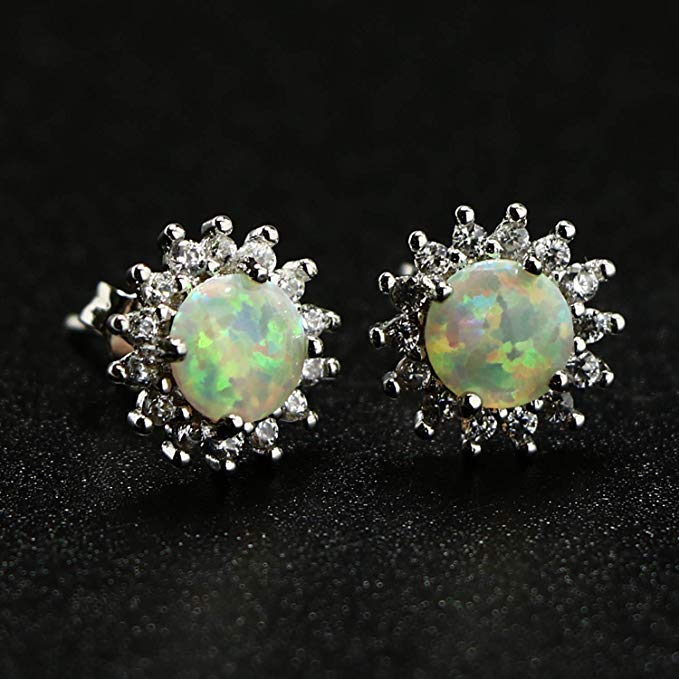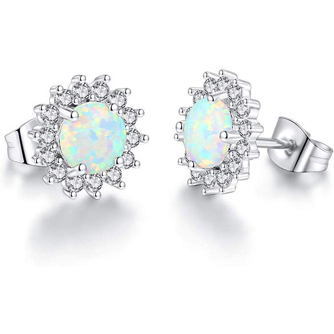 - ✦ SAFE TO WEAR ✦ 6mm round synthetic lab created opal, white gold plated posts and ear backs for almost all of sensitive ears.100% NICKEL-FREE AND HYPOALLERGENIC.