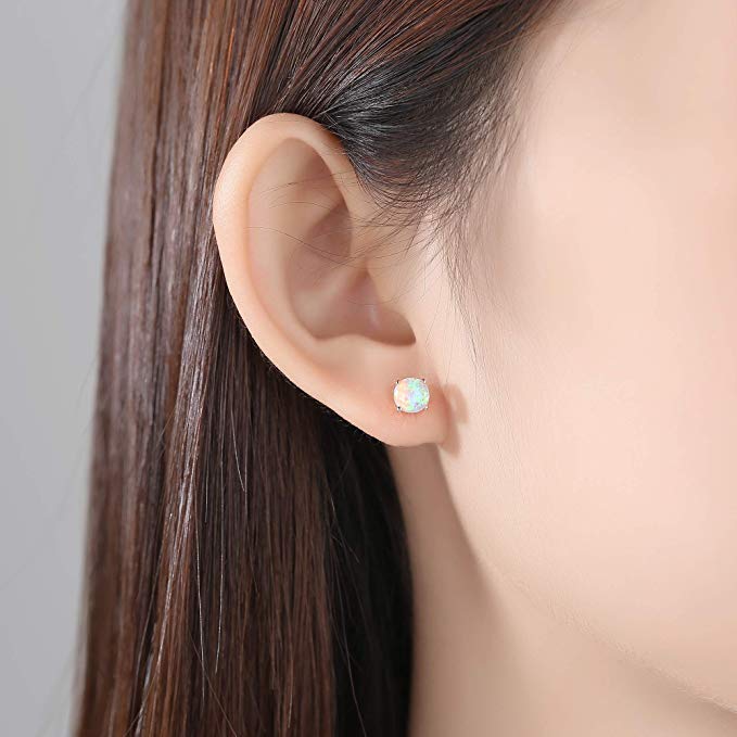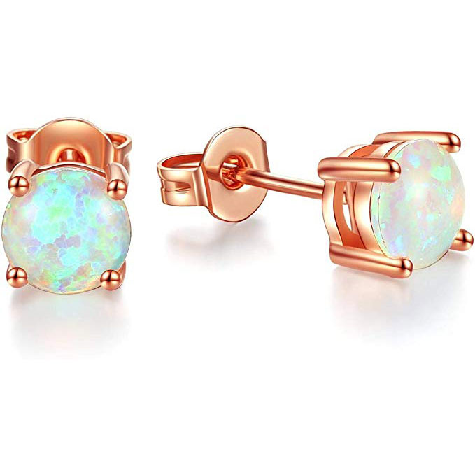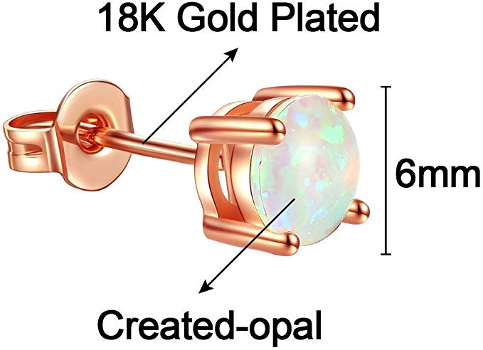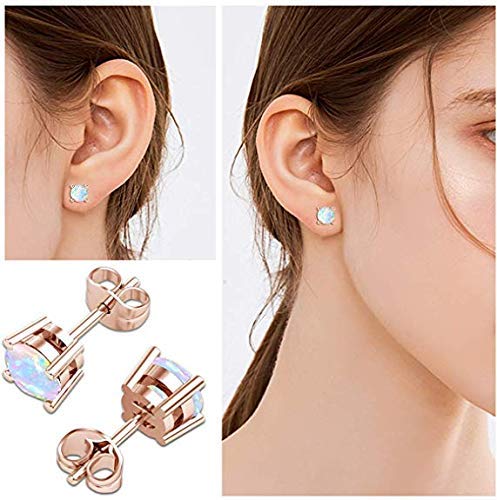 - ✦HYPOALLERGENIC METAL✦ – 18K Rose gold plated Earrings featuring Sparkling Lab Created White Round Opal.The materials are high-grade environmental, lead & nickel free for sensitive ear or baby girls ears.